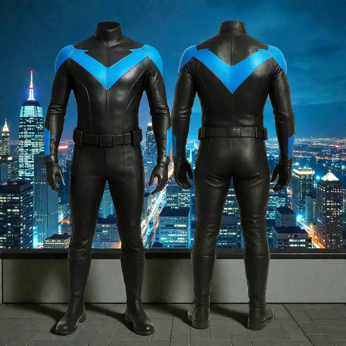 Blue Nightwing Cosplay Costume: Leather Superhero Suit