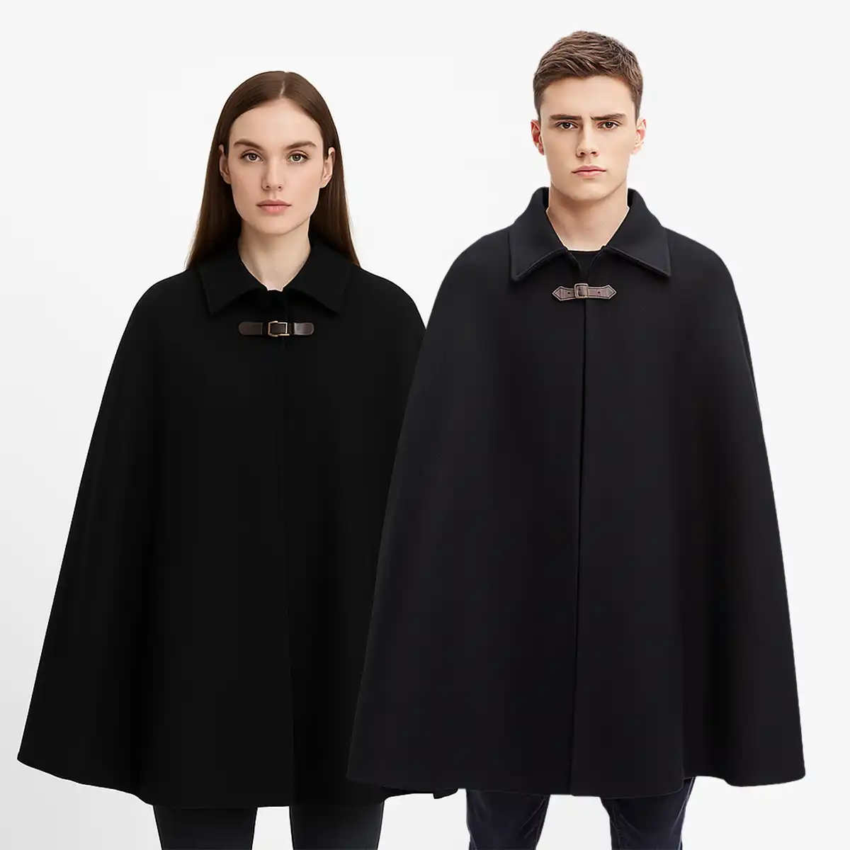 Gothic Cloak Cape Jacket: Unisex Flowing Cape with Adjustable Buckle and Dramatic Style