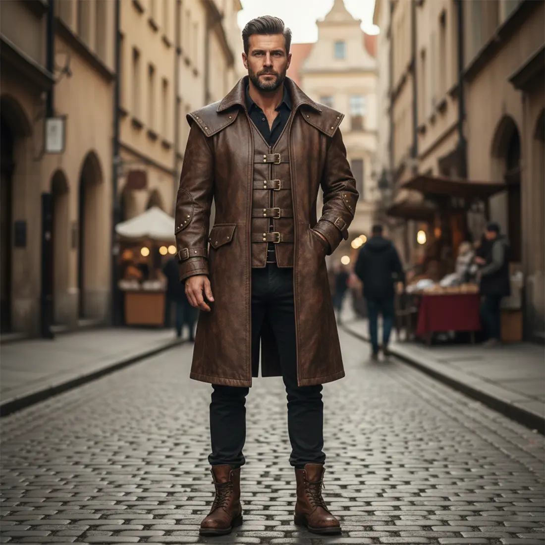 - Steampunk and post-apocalyptic ensembles requiring high-durability leather outerwear.