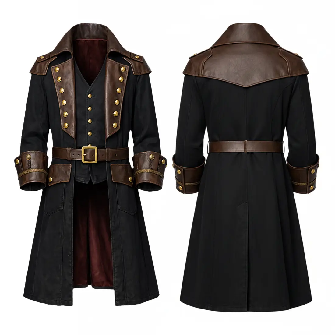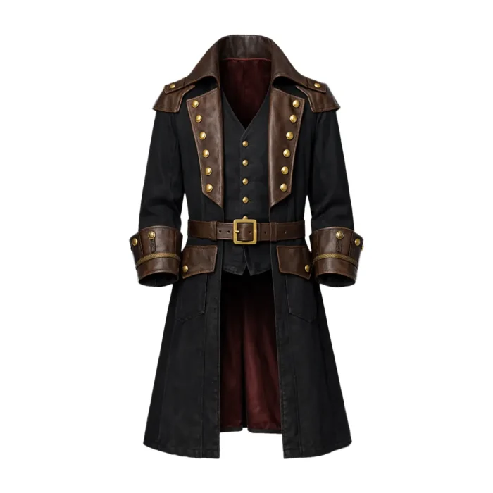 Finished with a deep burgundy lining and a functional waist belt, this coat is the definitive choice for those who demand a costume that feels as substantial as a piece of history.