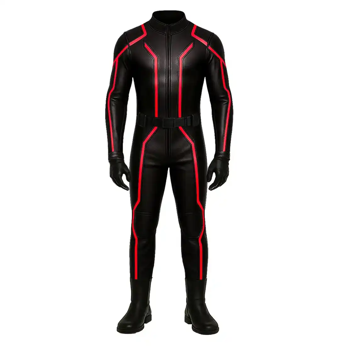 Red Tron Ares Leather Cosplay Costume | Sci-Fi LED Futuristic Suit | Red Tech Vigilante Outfit