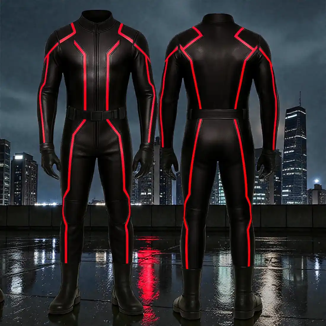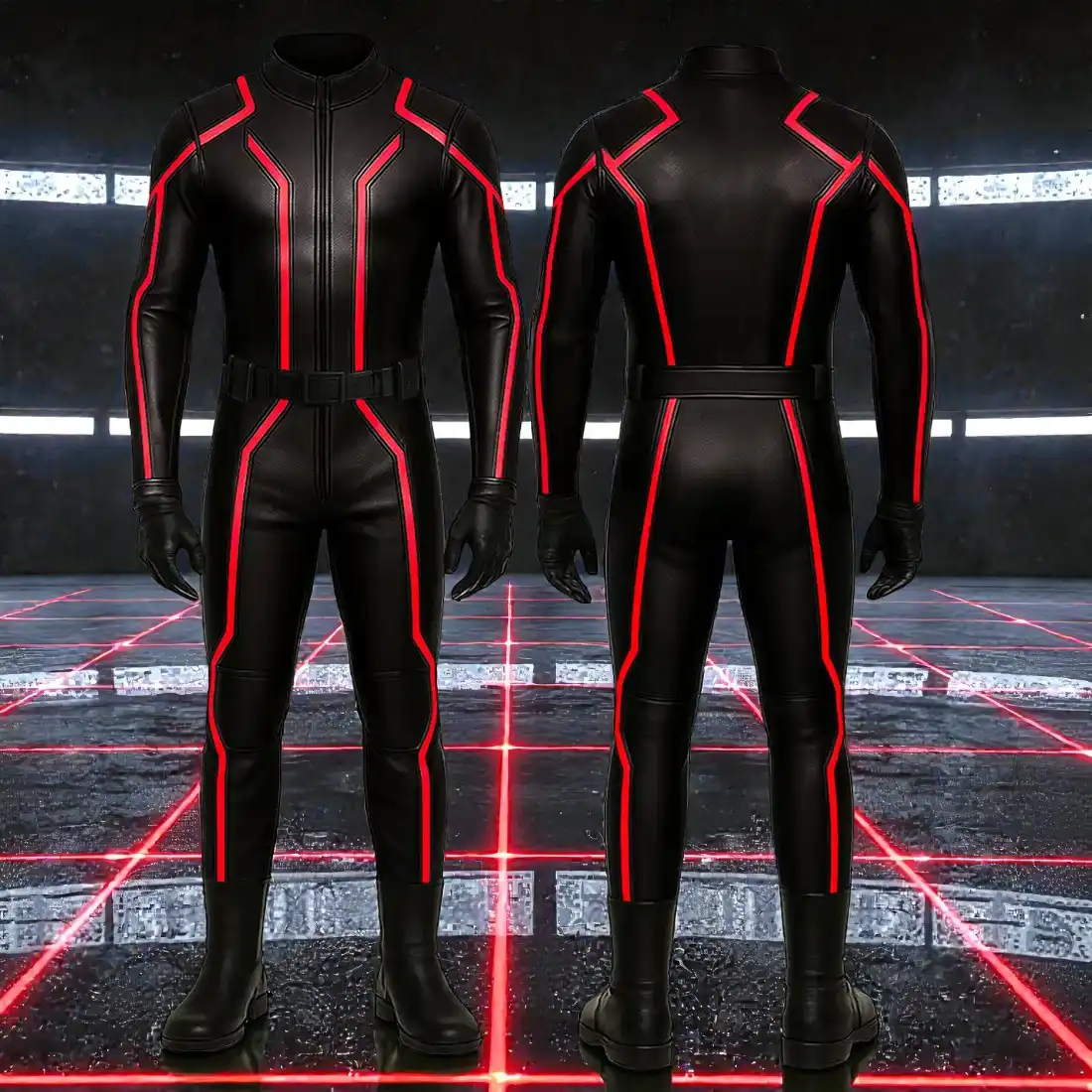 Command every frame in the Red Tron Ares cosplay costume, a tech-warrior outfit that blends gladiator intensity with neon-infused futurism inspired by the sci-fi movie Tron: Ares. Bold red accents of this sci-fi suit read like a battle-ready emblem that photographs with cinematic clarity during action shoots and staged fight scenes.