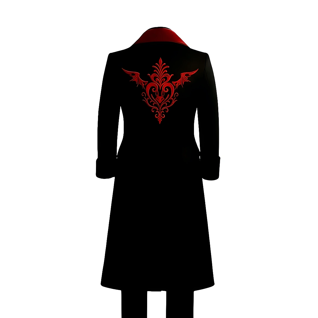 Vampire Aristocrat Overcoat | Men’s Gothic Cosplay Jacket | Winged Heart Embroidery Frock Coat | Formal Nocturnal Noble Attire